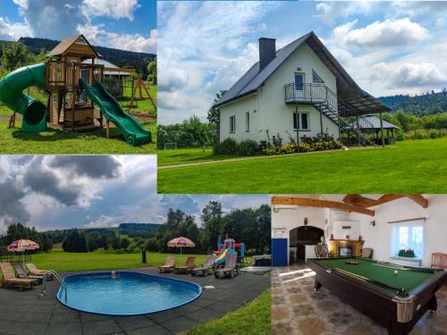 Dom całoroczny - Noclegi Pod Ostrym Działem in Ustrzyki Dolne provides accommodations with a garden and a shared lounge. Guests can enjoy access to a children's playground and to a seasonal outdoor pool. There's a sun terrace and guests can access free Wifi and free private parking. The rooms are fitted with a private bathroom, while selected rooms here will provide you with a fully equipped kitchenette. You can play billiards, table tennis, and darts at the apartment, and the area is popular for fishing. The apartment also has outdoor fireplace and a picnic area for a day outdoors. Skansen Sanok is 24 miles from Dom całoroczny - Noclegi Pod Ostrym Działem, while The Solina Dam is 16 miles away. Rzeszów-Jasionka Airport is 68 miles from the property.