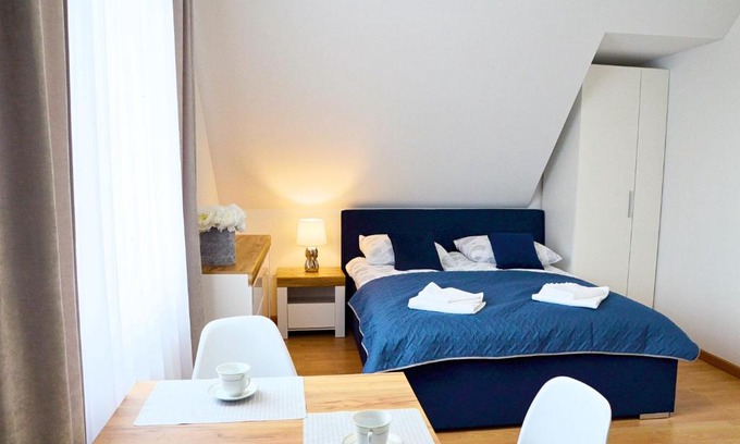 Dom Gościnny Lider offers accommodations in Niechorze, 29 miles from Kolberg Pier and 29 miles from Kołobrzeg Lighthouse. The homestay, set in a building dating back to 2005, is a 5-minute walk from Niechorze Beach and 29 miles from Kołobrzeg Railway Station. There's a terrace and guests can access free Wifi and free private parking. At the homestay, the units include a wardrobe, a flat-screen TV, a private bathroom, bed linen, and towels. A microwave, a fridge, and kitchenware are also offered, as well as a kettle. The rooms are equipped with heating facilities. Outdoor play equipment is also available at the homestay, while guests can also relax in the garden. Town Hall is 30 miles from Dom Gościnny Lider, while Amber Baltic Golf Club is 24 miles from the property.
