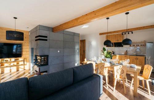 Featuring a garden, Dom Jarosze II - LoftAffair features accommodations in Ząb. This vacation home provides free private parking, free shuttle service, and free Wifi. Staff on site can arrange airport transfers. Providing a terrace and mountain views, the vacation home includes 3 bedrooms, a living room, flat-screen TV, an equipped kitchenette, and 2 bathrooms with a shower. Guests can enjoy an ambient stay in their soundproof room with parquet floors and a fireplace. This vacation home is allergy-free and non-smoking. Gubalowka Mountain Train Station is 4 miles from the vacation home, while Zakopane Railway Station is 7.8 miles away.