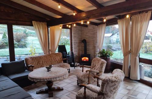 Providing garden views, Dom Kowala in Jankowce provides accommodations, a garden, barbecue facilities, and a shared lounge. Housed in a building dating back to 2017, this farm stay is 12 miles from Skansen Sanok and 10 miles from The Solina Dam. There's a sun terrace and guests can access free Wifi and free private parking. All units come with a patio with mountain views, a fully equipped kitchen with a dishwasher and an oven, and a private bathroom with shower. A microwave, a toaster, and fridge are also provided, as well as a kettle. At the farm stay, each unit is equipped with bed linen and towels. A selection of options including local specialities, fresh pastries, and pancakes are served for the continental breakfast. For guests with children, the farm stay offers outdoor play equipment. Skiing and cycling can be enjoyed nearby, while a bicycle rental service and ski storage space are also available on-site. Zdzislaw Beksinski Gallery is 12 miles from Dom Kowala, while Sanok Castle is 12 miles from the property. Rzeszów-Jasionka Airport is 63 miles away, and the property offers a paid airport shuttle service.