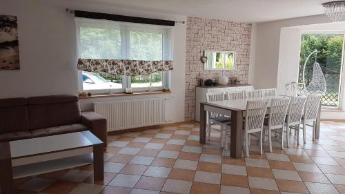 Dom Majówka offers accommodations in Stężyca, 30 miles from Teutonic Castle in Lębork and 12 miles from Upside-down house. This property offers access to a terrace and free private parking. Guests can use a garden. This 3-bedroom vacation home comes with a fully equipped kitchen, a seating area, a dining area, and a flat-screen TV. The accommodation has a fireplace. Kaszuby Ethnographic Park is 19 miles from the vacation home, while Teutonic Fortress is 19 miles away. Gdańsk Lech Wałęsa Airport is 33 miles from the property.