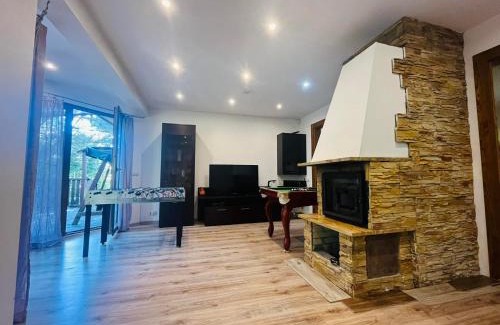 25 miles from Talki Golf Course in Pilchy, Dom na Mazurach provides accommodations with access to a sauna. This property offers access to a terrace, table tennis, free private parking, and free Wifi. The villa is composed of 4 separate bedrooms, a living room, a fully equipped kitchen, and 2 bathrooms. A flat-screen TV is provided. The accommodation is non-smoking. During warmer months, you can make use of the barbecue facilities and eat on the private balcony. You can play mini-golf at the villa. Guests can also relax in the garden or in the shared lounge area. Sailors' Village is 31 miles from Dom na Mazurach, while Tropikana Aqua Park is 31 miles away. Olsztyn-Mazury Airport is 57 miles from the property.