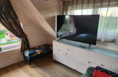 Offering a garden, Dom nad jeziorem Dadaj w Kojtrynach offers accommodations in Kromerowo. This property offers access to a terrace, free private parking, and free Wifi. Olsztyn Bus Station is 18 miles away and Castle of Lidzbark Warmiński is 28 miles from the vacation home. The air-conditioned vacation home is composed of 2 separate bedrooms, a living room, a fully equipped kitchen, and 1 bathroom. A flat-screen TV is offered. The accommodation is non-smoking. Święta Lipka Sanctuary is 26 miles from the vacation home, while Olsztyn Stadium is 18 miles from the property. Olsztyn-Mazury Airport is 34 miles away.