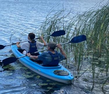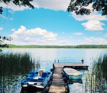 Featuring a garden, Dom nad jeziorem Mazury pomost segment 1 features accommodations in Kozin. This property offers access to a balcony, free private parking, and free Wifi. On clear days, guests can head outside to enjoy the vacation home's outdoor fireplace. Offering a terrace and garden views, the vacation home includes 3 bedrooms, a living room, flat-screen TV, an equipped kitchen, and 4 bathrooms with a bath and a shower. Guests can take in the ambience of the surroundings from an outdoor dining area or keep warm by the fireplace on colder days. For added privacy, the accommodation features a private entrance. During warmer months, you can make use of the barbecue facilities and eat on the private patio. For guests with children, the vacation home offers kids pool, an indoor play area, and outdoor play equipment. Cycling, fishing, and canoeing are possible within the area, and Dom nad jeziorem Mazury pomost segment 1 offers water sports facilities. Boyen Fortress is 8.2 miles from the accommodation, while Indian Village is 12 miles from the property. Olsztyn-Mazury Airport is 55 miles away.