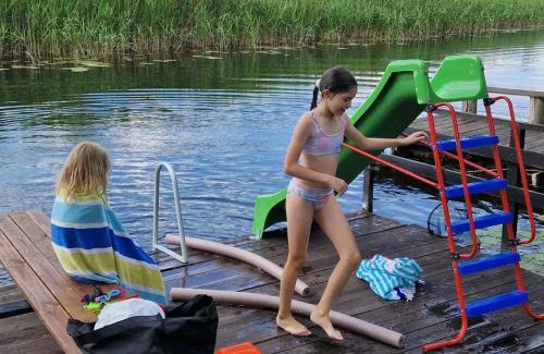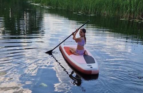 Providing a garden, Dom nad rzeką Legą offers accommodations in Sypitki. This beachfront property offers access to free Wifi and free private parking. On clear days, guests can head outside to enjoy the vacation home's outdoor fireplace or simply kick back and relax. Offering a patio and river views, the vacation home includes 1 bedroom, a living room, satellite flat-screen TV, an equipped kitchen, and 1 bathroom with a shower. Towels and bed linen are offered in the vacation home. There's also a seating area and a fireplace. There is an on-site coffee shop, and during warmer months you can make use of the barbecue facilities. The area is popular for hiking, and free use of bicycles is available at the vacation home. Cycling, fishing, and canoeing are possible within the area, and Dom nad rzeką Legą offers a private beach area. Augustow Train Station is 27 miles from the accommodation, while Rajgrodzkie Lake is 12 miles from the property. Olsztyn-Mazury Airport is 91 miles away.