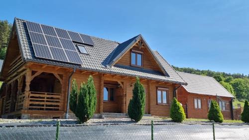 Dom u Julii Bieszczady in Ustrzyki Dolne provides accommodations with a garden and barbecue facilities. This property offers access to a patio and free private parking. The villa provides mountain views, a sun terrace, and free Wifi is available throughout the property. The units come with tiled floors and feature a fully equipped kitchen with a dishwasher, a dining area, a flat-screen TV with satellite channels, and a shared bathroom with shower and a hair dryer. An oven, a microwave, and fridge are also provided, as well as a kettle. At the villa complex, some units are allergy-free. For guests with children, the villa features outdoor play equipment. A water park is available on-site, and both skiing and cycling can be enjoyed close to Dom u Julii Bieszczady. Skansen Sanok is 26 miles from the accommodation, while Krzemieniec is 30 miles away.