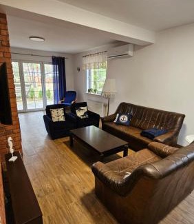 Providing a garden, Dom u Kapitana w Lubiatowie provides accommodations in Lubiatowo. This property offers access to a terrace, free private parking, and free Wifi. Lubiatowo Beach is 1.4 miles from the villa and Leba Railway Station is 23 miles away. The air-conditioned villa consists of 4 bedrooms, a living room, a fully equipped kitchen with a dishwasher and a coffee machine, and 2 bathrooms with a walk-in shower and a bidet. The tiled floors, fireplace, and peaceful vibe add to the ambience of the room. The property has an outdoor dining area. Guests can make the most of the warm weather with the property's barbecue facilities. A bicycle rental service is available at the villa, while cycling can be enjoyed nearby. Teutonic Castle in Lębork is 24 miles from Dom u Kapitana w Lubiatowie, while Stadium Gniewino is 13 miles away. Gdańsk Lech Wałęsa Airport is 50 miles from the property.