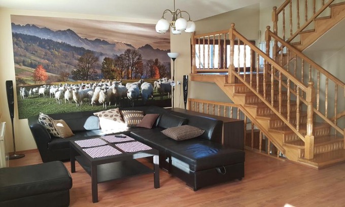 Dom w Leśnicy, a property with a terrace and barbecue facilities, is located in Leśnica, 7.2 km from Bania Thermal Baths, 23 km from Niedzica Castle, as well as 25 km from Railway Station Zakopane. This chalet provides free private parking, a shared kitchen and free WiFi. The 4-bedroom chalet is equipped with a living room with a flat-screen TV with satellite channels, a fully equipped kitchen with fridge and dishwasher, and 1 bathroom with a hairdryer. Towels and bed linen are provided in the chalet. The chalet offers a children's playground. After a day of hiking, skiing or cycling, guests can relax in the garden or in the shared lounge area. Zakopane Aqua Park is 25 km from Dom w Leśnicy, while Gubalowka Mountain is 27 km away. The nearest airport is Poprad-Tatry Airport, 64 km from the accommodation.