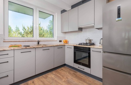 The house is located in the picturesque village of Mieroszyno near Jastrzębia Góra. It is an excellent area away from the hustle and bustle of the city, where you can relax during your holiday near the sea. The distance to the nearest beach in Chłapowo can be covered in 10 minutes by car. This is an excellent location, thanks to which everything necessary for a successful holiday is available in close proximity. The location of the flat 5 minutes by car from the centre of Jastrzębia Góra offers direct access to grocery shops, numerous cafés with delicious ice cream, restaurants with local specialities and many other attractions. Take a walk to the Jastrzębia Klif to admire the sandy beach from above and the sea waves skimming in the distance. There is also a tourist curiosity in Jastrzębia Góra - the northernmost point of Poland! It is also worth visiting the Seaside Landscape Park, which is a perfect place for hiking and cycling trips in the company of beautiful nature. There are also bus stops close to the house, the nearest one being 150 metres away. The nearby grocery shop Lewiatan (800 m) will allow our guests to stock up on all necessary products.
