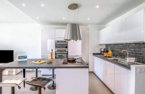 2-room apartment 55 m2, on the ground floor. Very beautiful and modern furnishings: living/dining room with 1 double sofabed (1 x 140 cm, length 200 cm), TV (flat screen). Exit to the terrace. 1 room with 2 beds (90 cm, length 190 cm). Open kitchen (oven, dishwasher, 3 induction hot plates, toaster, kettle, microwave, freezer, electric coffee machine). Exit to the terrace. Shower/WC. Electric heating, air-conditioning. Terrace 20 m2, garden 50 m2. Terrace furniture. Facilities: washing machine. Internet (WiFi, free). Parking space n 701 at the house. Please note: suitable for families. Non-smokers only. Smoke alarm. 2A247000512A2