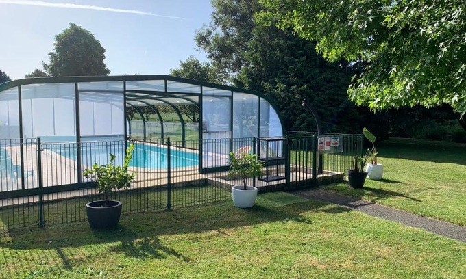 Providing garden views, Domaine des Trois Rivières in Merlevenez features accommodations, a garden, and barbecue facilities. This property offers a heated pool, free Wifi, and free private parking. Featuring a private entrance, the vacation home allows guests their privacy. The vacation home provides guests with a terrace, pool views, a seating area, a flat-screen TV, a fully equipped kitchen with a dishwasher and an oven, and a shared bathroom with shower and a hair dryer. A microwave, a toaster, and fridge are also provided, as well as a coffee machine and a kettle. The rooms are equipped with heating facilities. For guests with children, Domaine des Trois Rivières provides an indoor play area, outdoor play equipment, and a baby safety gate. A water park is available on-site, and both cycling and hiking can be enjoyed close to the accommodation. Parc des Expositions Lorient is 6.1 miles from Domaine des Trois Rivières, while Lorient Train Station is 7.2 miles away. Lorient South Brittany Airport is 13 miles from the property.