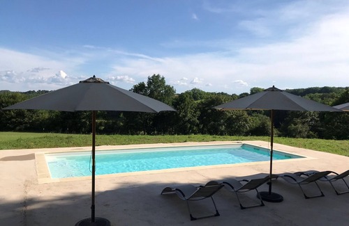 Charming Villa just renovated with taste. Private heated swimming pool. This is the ideal place to rest and feel comfortable with friends or family. Ideally situated next to Sarlat and the Dordogne river, you will like its quiet surroundings with its wonderful 360° view on top of the hill. 400 square meters of Luxury in the middle of 2,5 hectares of garden and fruit trees.