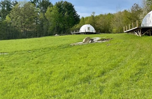 Our geodesic domes sit in on 10 acres of our property . In total come spring farm is 28 acres , you will have access to round pond to kayak , fish or swim. You may also visit the Alpacas , bunnies , pigs , sheep and our new lounge area opening June . The bathroom facilities are private for each dome, no sharing .You will need to walk to bathhouse . Pocket WiFi can be provided if requested . Follow us on IG at Comespringfarm .
