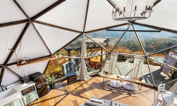 Reconnect, laugh, and lose track of time on top of the world in a magical, inspiring, socially distanced environment that is guaranteed to lift everyone’s spirit and create cherished memories that will last a lifetime! Enjoy 1,500 square feet of private space (dome + terrace + fire pit) and breathtaking mountaintop views from this impressive, Instagrammable, luxury geodesic dome! XL Domes have their own section of the mountain and feature our best views, additional queen-size loft bed, larger hot tub, and more space..LIVE LIKE KINGS & QUEENS while being immersed in nature and surrounded by luxury amenities: stargaze in the hot tub, shower under the stars, roast s’mores, play antique board games, enjoy popcorn + movie night, blazing fast internet, BBQ grill, pizza oven, and furnished kitchenette. Wake up in the clouds to the relaxing sounds of songbirds and savor magical mornings in luxurious robes after waking up refreshed from the best sleep of your life. Journal, read, dream, and enjoy the art of slow living with french-press coffee and breakfast with million-dollar views. Then, PLAY LIKE KIDS in Chattanooga’s nature playground: scenic hikes, waterfalls, horseback riding, ATV tours, paragliding, paddleboarding, kayaking, fishing, cruise the Tennessee River on a pontoon, and fill your lungs with fresh mountain air.