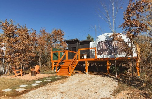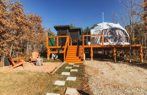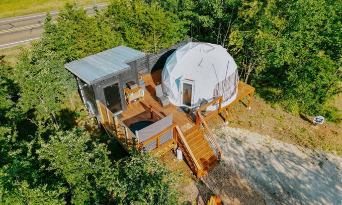 We are pre-booking our domes for Spring 2024. Currently they are discounted 35% until offer ends. Each dome will be very similar to these pictures though they will differ slightly. You will have all the needed amenities for a memorable stay plus some. Each dome is in nature, elevated for privacy and amazing views. You will have a 6' cooling tub in warm seasons and a hot tub in the cool seasons. Walk in shower bathroom is private and connected to the Dome by way of the elevated deck.