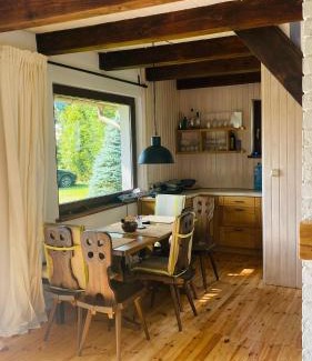Offering free bikes, Domek Leśny Reset provides accommodations in Studzienice. This beachfront property offers access to a terrace and free private parking. The accommodation offers a shared kitchen and private check-in and check-out for guests. The vacation home consists of 2 bedrooms, a living room, a fully equipped kitchenette with a dishwasher and a coffee machine, and 1 bathroom with a shower. Towels and bed linen are featured in the vacation home. The property has an outdoor dining area. During warmer months, you can make use of the barbecue facilities and eat on the private balcony. You can play darts at the vacation home, and the area is popular for canoeing and hiking. Snorkeling, diving, and cycling are possible within the area, and Domek Leśny Reset offers a private beach area. Teutonic Fortress is 11 miles from the accommodation, while Bory Tucholskie National Park is 23 miles from the property. Gdańsk Lech Wałęsa Airport is 54 miles away, and the property offers a paid airport shuttle service.