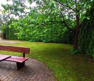 Providing a garden, Domek letniskowy Arkady features accommodations in Giżycko. This property offers access to a balcony and free private parking. On clear days, guests can head outside to enjoy the vacation home's outdoor fireplace or simply kick back and relax. Featuring a terrace and garden views, the vacation home includes 2 bedrooms, a living room, satellite flat-screen TV, an equipped kitchen, and 1 bathroom with a shower. Towels and bed linen are available in the vacation home. There's also a seating area and a fireplace. During warmer months, you can make use of the barbecue facilities and eat on the private patio. Cycling is possible within the area and the vacation home offers a private beach area. Święta Lipka Sanctuary is 28 miles from Domek letniskowy Arkady, while Boyen Fortress is 1.2 miles from the property. Olsztyn-Mazury Airport is 64 miles away.