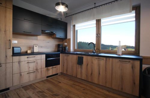 Offering a garden, Domek na Wichrowym Wzgórzu provides accommodations in Dursztyn. This property offers access to a terrace, darts, free private parking, and free Wifi. The accommodation offers a shared kitchen and private check-in and check-out for guests. The spacious vacation home includes 3 bedrooms and a living room with a flat-screen TV. The accommodation is non-smoking. If you'd prefer to cook in the comfort of your own space, you can make use of the on-site kitchen and barbecue facilities. For guests with children, the vacation home features outdoor play equipment. Guests can also warm up near the outdoor fireplace after a day of skiing. Bania Thermal Baths is 8.2 miles from Domek na Wichrowym Wzgórzu, while Niedzica Castle is 11 miles from the property.