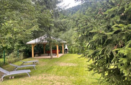 Located in Krościenko in the Małopolskie region and Niedzica Castle reachable within 10 miles, Domek nad Dunajcem provides accommodations with free WiFi, BBQ facilities, a garden and free private parking. Each unit has a terrace offering mountain views, a cable flat-screen TV, a dining area, a well-fitted kitchen and a private bathroom with shower. A fridge and stovetop are also provided, as well as an electric tea pot. Treetop Walk is 20 miles from the lodge, while Bania Thermal Baths is 23 miles away.