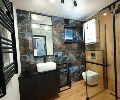 Domek nad jeziorem w Wilamowie enjoys a location in Małdyty, 28 miles from Elbląg Canal and 26 miles from Elbląg Railway Station. Guests staying at this vacation home have access to a balcony. The vacation home provides rooms with air conditioning, free private parking, and free Wifi. All units come with a terrace with lake views, a fully equipped kitchenette with an oven and a fridge, and a private bathroom with a bath or shower. There's also a stovetop, kitchenware, and a kettle. At the vacation home, all units include bed linen and towels. Guests can make the most of the warm weather with the property's barbecue facilities. Guests can relax near the outdoor fireplace at the vacation home. Stadium Ostroda is 20 miles from the vacation home, while Blessed Dorota Church is 25 miles away. Gdańsk Lech Wałęsa Airport is 71 miles from the property.