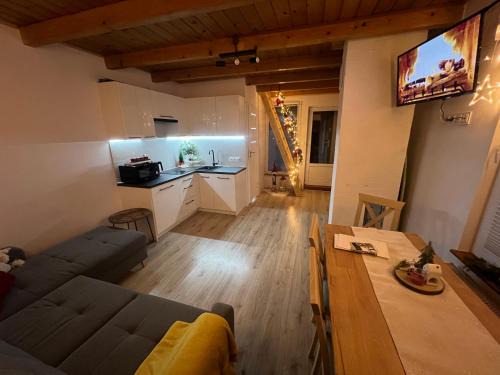 Featuring a garden, Domek nad Popradem provides accommodations in Muszyna. This property offers access to a terrace and free private parking. Lubovna Castle is 23 miles from the villa and Muszyna - Ruiny Zamku is a 13-minute walk away. With free Wifi, this 2-bedroom villa features a cable flat-screen TV and a kitchenette with a microwave and toaster. Towels and bed linen are available in the villa. The property has an outdoor dining area. Krynica Zdroj Train Station is 6.7 miles from the villa, while Nikifor Museum is 6.8 miles from the property.