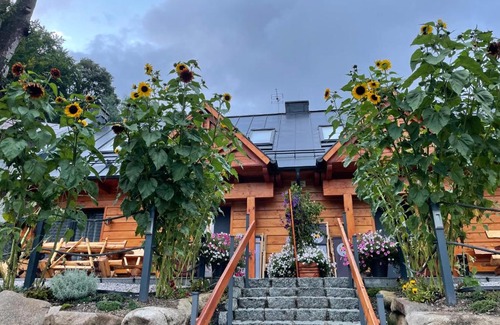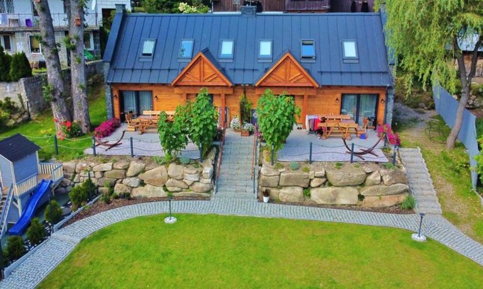 Surrounded by views of the garden, DOMEK SUDECKI ZAKĄTEK - 2 APARTAMENTY 7- os Z GORĄCĄ BALIĄ ZEWNĘTRZNĄ is a sustainable apartment in Szklarska Poręba, offering guests an environmentally friendly accommodation close to Szklarska Poreba Bus Station. There's a private entrance at the apartment for the convenience of those who stay. There's an outdoor fireplace and guests can access free Wifi and free private parking. The apartment provides guests with a terrace, mountain views, a seating area, a flat-screen TV, a fully equipped kitchen with a dishwasher and a microwave, and a private bathroom with walk-in shower and a hair dryer. A toaster, a fridge, and stovetop are also provided, as well as a kettle. At the apartment complex, each unit is equipped with bed linen and towels. Guests can make the most of the warm weather with the property's barbecue facilities. For guests with children, DOMEK SUDECKI ZAKĄTEK - 2 APARTAMENTY 7- os Z GORĄCĄ BALIĄ ZEWNĘTRZNĄ provides outdoor play equipment. Skiing and hiking can be enjoyed nearby, while a bicycle rental service and ski storage space are also available on-site. Izerska Railway is a 11-minute walk from the accommodation, while Dinopark is 1.3 miles away. The nearest airport is Copernicus Wrocław Airport, 75 miles from DOMEK SUDECKI ZAKĄTEK - 2 APARTAMENTY 7- os Z GORĄCĄ BALIĄ ZEWNĘTRZNĄ.