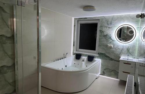 Domek w Dusznikach is located in Duszniki Zdrój, just 8.2 miles from Polanica Zdroj Train Station and 10 miles from Kudowa Zdrój Train Station. This property offers access to a terrace and free private parking. The vacation home has an outdoor fireplace and a hot tub. With free Wifi, this 1-bedroom vacation home offers a flat-screen TV and a kitchenette with a dishwasher and fridge. Towels and bed linen are featured in the vacation home. The property has an outdoor dining area. The vacation home has a picnic area where you can spend the day outdoors. Errant Rocks is 11 miles from the vacation home, while The Grandmother's Valley is 20 miles away.