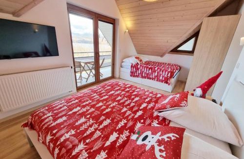 DOMEK Z POMOSTEM nad Jeziorem Czorsztyńskim enjoys a location in Frydman, 5 miles from Niedzica Castle and 10 miles from Bania Thermal Baths. This property offers access to a balcony and free private parking. The chalet features lake views, a children's playground, a 24-hour front desk, and free Wifi is available throughout the property. Each unit features a terrace, a fully equipped kitchen with a fridge, a dining area, and a flat-screen TV, while the private bathroom includes a shower and a hair dryer. A stovetop and kitchenware are also offered, as well as a kettle. At the chalet complex, units have bed linen and towels. After a day of skiing or cycling, guests can relax in the garden or the shared lounge area. Treetop Walk is 18 miles from the chalet, while Zakopane Railway Station is 23 miles from the property.