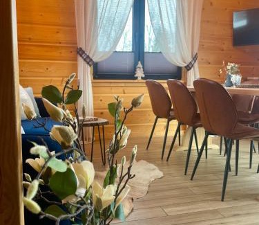 Domki Na Wypasie Jacuzzi & Sauna in Białka Tatrzańska provides accommodations with a garden and barbecue facilities. This property offers access to a balcony, free private parking, and free Wifi. On clear days, guests can head outside to enjoy the chalet's outdoor fireplace, or simply kick back and relax. Each unit features a terrace, a fully equipped kitchen with a dishwasher, a dining area, and a seating area with a flat-screen TV, while the private bathroom includes a walk-in shower. A fridge, a stovetop, and kitchenware are also offered, as well as a kettle. At the chalet complex, the units include bed linen and towels. The area is popular for skiing and hiking. In addition, ski equipment rental and free use of bicycles are available at this chalet. The chalet has a picnic area where you can spend the day outdoors. Bania Thermal Baths is 2 miles from the chalet, while Niedzica Castle is 12 miles from the property.