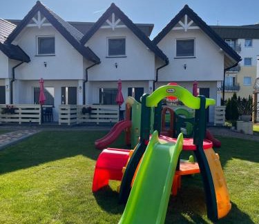 Located a 4-minute walk from Sarbinowo Beach, Domki Słoneczka offers free bikes, a garden and air-conditioned accommodations with a terrace and free WiFi. The accommodations come with a flat-screen TV and a private bathroom with shower while the kitchenette has a fridge, a microwave and a stovetop. There's a playground and a grill at this property and guests can go cycling nearby. Town Hall is 20 miles from the lodge, while Kołobrzeg Railway Station is 21 miles from the property. Solidarity Szczecin-Goleniów Airport is 80 miles away.