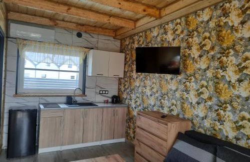 A recently renovated vacation home in Sarbinowo, Domki U Joanny - Sarbinowo 900 m do morza offers children's playground, private parking, and sports facilities. There's a private entrance at the vacation home for the convenience of those who stay. The vacation home provides parking on-site, a pool with a view, and full-day security. Opening to a terrace with garden or quiet street views, all units at the vacation home have a fully equipped kitchen with a fridge and a stovetop. Each room is equipped with a kettle, a private bathroom, and free Wifi, while some rooms are equipped with a balcony and some have lake views. At the vacation home, each unit is equipped with air conditioning and a flat-screen TV. Guests can make the most of the warm weather with the property's barbecue facilities. Kids pool is also available at the vacation home, while guests can also relax in the garden. Sarbinowo Beach is 1.2 miles from Domki U Joanny - Sarbinowo 900 m do morza, while Town Hall is 21 miles away. Solidarity Szczecin-Goleniów Airport is 82 miles from the property.