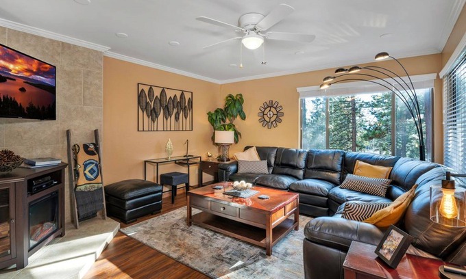 Welcome to our newly updated, charming, comfy & cozy condo which boasts a generous 1700 sq. ft. space with 3 bedrooms 3 bathrooms + 1/2 bathroom in a private residential HOA community known as Lake Village, Zephyr Cove, Stateline NV 89448. We sleep a max of 8 guests/persons/humans comfortably which includes infants and toddlers per our county regulatory compliance. Our lovely spacious home has beautiful hard wood flooring throughout! We also include a 3rd floor heated Hot Tub on our large exterior deck which seats 6. We are centrally located in the Zephyr Cove, Stateline, NV area in a private residential community known as Lake Village, just minutes away from Nevada Beach, Zephyr Cove Beach, Round Hill Pines & Heavenly Valley Ski resort, and so much more! You can’t beat this location! Easy access to downtown & all outdoor activities you can imagine. Gaming, world renown Edgewood golf course which hosts the Celebrity Golf tournament in July, Harvey's outdoor concert series hosts the very best of music, fine dining, art galleries, cinemas & shopping galore. Oh wait, there's more, did we mention a bike trail just a few feet away from the condo which is a 5-minute bike ride, 10-minute jog or 15-minute walk to Nevada Beach, our local grocery store, nail spa, bar and grill, sushi, dollar tree and more. Wow! now that's what we like to call convenient.