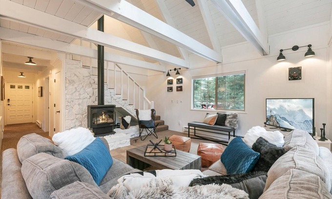 Welcome to your serene and stylish Tahoe mountain escape in Tahoe Donner! This beautifully upgraded retreat offers bright, sun-drenched interiors, soaring vaulted ceilings, and thoughtfully curated modern furnishings that blend comfort and style. Whether you're unwinding after a day on the slopes or soaking in the fresh mountain air, this home is designed for an unforgettable Tahoe experience.