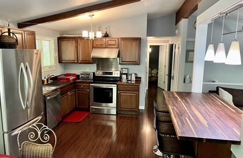 Home accommodates up to 6 people comfortably with 2 bedrooms/1 bath on the 1st floor level and 2 bedrooms/1 bath on the 2nd floor level of the house. There are 2 king beds, 1 queen and 1 bunk bed for your sleeping arrangements. All linens and basic towels are provided, but we do recommend you to bring your towels. Washer & dryer are available to be use at the house. New central furnace and A/C unit professionally installed.