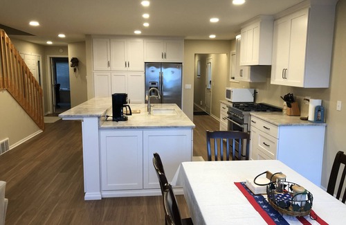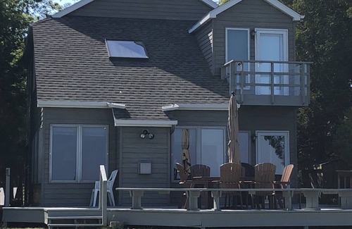 This year-round lake front home boasts a newly renovated first floor with spectacular views of the bay from upper and lower decks. Our 3 bedroom, 2 bath home has plenty of room for your family of six with a spacious, fully-equipped kitchen, dining room and living area with gas fireplace and a first floor master bedroom and bath. The second floor offers two additional bedrooms, a full bath and loft with room to spread out.