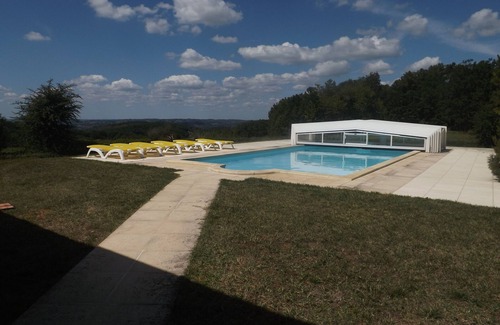 Dordogne, in black Périgord, 9-person gîte well placed to visit and disconnect is located in Cladech. Dordogne, in black Périgord, 9-person gîte well placed to visit and disconnect provides accommodation, featuring Pool, TV, View, among other amenities. This House features Pool, TV, View, to make your stay a comfortable one.