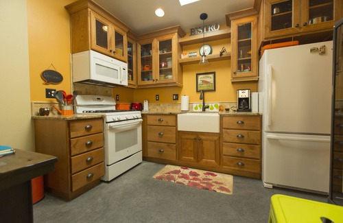 This individually built pensione is located behind my residence and features one bedroom with a queen size bed; concrete floors heated in kitchen & bath; off street parking; washer & dryer; one bath with walk in shower and granite countertop; tons of closet space; air-conditioning; a fully equipped kitchen, granite countertop, but without dishwasher; DirecTV; WIFI; DVD player; books, games, etc. This home was a year long labor of love furnished with everything you would want or need in a vacation rental. It is professionally cleaned after each guest. Since I live on the same property I am available to help in any way to make your visit more enjoyable. You are welcome to use bicycles, the barbecue and fire pit or sit in backyard seating area and enjoy the outdoors. Everything is new in this adorable 50's retro furnished fun space. Walk downtown in 20 minutes or to Municipal Park and Greenbelt in 5 minutes. Close to Botanical Gardens, Boise State University, St. Luke's & VA hospitals, and all Boise has to offer.