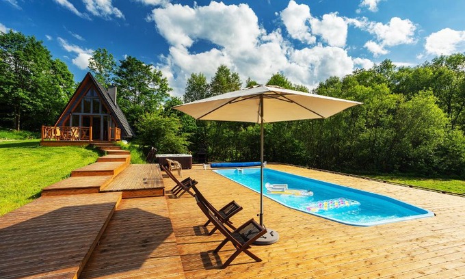 Dosbajka in Małastów provides accommodations with pool with a view, a garden, and barbecue facilities. This property offers access to a terrace, free private parking, and free Wifi. Guests can make use of the outdoor fireplace or the children's playground, or enjoy views of the mountain and garden. Guests can stay warm with a fireplace in every unit. A balcony with pool view, a cable flat-screen TV with DVD player, and air conditioning are featured in some units. At the vacation home, the units come with bed linen and towels. A bicycle rental service is available at the vacation home, while hiking can be enjoyed nearby. Nikifor Museum is 31 miles from Dosbajka, while Magura National Park is 15 miles away. The nearest airport is Kosice International Airport, 73 miles from the accommodation.
