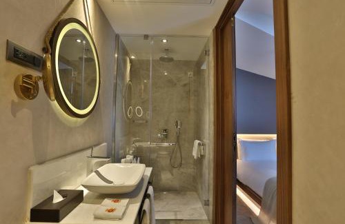Offering an indoor pool, a restaurant and bar and a spa and wellness center in a stylish modern decor, Dosso Dossi Hotels Downtown is located on Vatan Avenue in Fatih. The historic Sultanahmet area is within 1.9 mi. Each soundproofed room includes air conditioning, a mini-bar.Some rooms have a coffee table, seating area and all have an electric kettle.. The private bathroom comes with a hairdryer and free toiletries. At Dosso Dossi Hotels Downtown you will find a fitness center, and a hammam and massage services are available. Other facilities offered at the property include a concierge desk and a guest relations desk. The hotel is 1.2 mi from Suleymaniye Mosque, 1.5 mi from the Grand Bazaar and 2.1 mi from the Blue Mosque. Istanbul Ataturk Airport is 9.3 mi away and can be reached by subway via nearby Emniyet-Fatih station, a 5-minute walk away. Istanbul Airport is 33 mi away. When booking more than 7 rooms, different policies and additional supplements may apply.