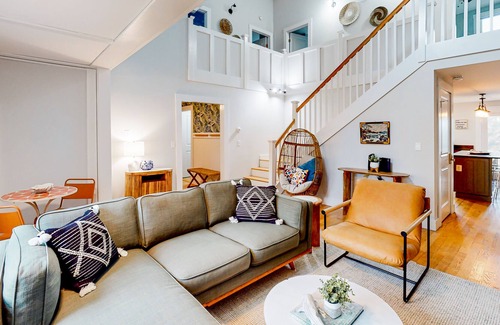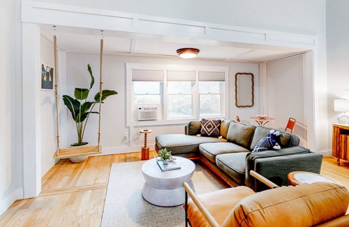 The home's bedrooms have been adorned with fun color palettes, bohemian-themed decorations, and partial air-conditioning. The little ones of your family are sure to love their room's play items and nautical-themed murals. Additional interior perks include designated work space, a Pack-N-Play, beach gear, board games, and internet access.