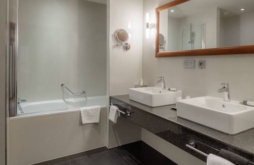 DoubleTree by Hilton Bratislava offers 120 accommodations with MP3 docking stations and minibars. Beds feature Select Comfort mattresses. LCD televisions are featured in guestrooms. Bathrooms include shower/tub combinations with deep soaking bathtubs and rainfall showerheads. Bathrooms are also outfitted with designer toiletries, complimentary toiletries, and hair dryers.