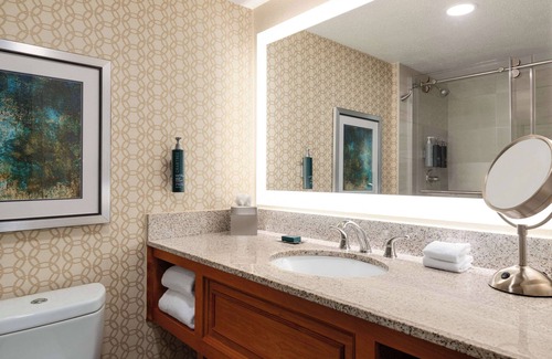 Doubletree by Hilton Fort Myers at Bell Tower Shops offers 224 air-conditioned accommodations with safes and coffee/tea makers. Accommodations offer separate sitting areas. Beds feature premium bedding. 32-inch LCD televisions come with premium satellite channels and Netflix. Guests can make use of the in-room refrigerators and microwaves. Bathrooms include bathtubs or showers, complimentary toiletries, and hair dryers.