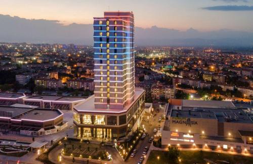 Located in Manisa, 23 miles from Izmir Clock Tower, DoubleTree by Hilton Manisa provides accommodations with a fitness center, free private parking, a terrace and a restaurant. This 5-star hotel offers room service, a 24-hour front desk and free WiFi. Guests can use the spa and wellness center with an indoor pool, sauna, and hot tub, as well as a bar. All rooms are equipped with air conditioning, a desk and a flat-screen TV, and some units at the hotel have a balcony. All guest rooms feature a safety deposit box. Breakfast is available, and includes buffet, à la carte and continental options. At DoubleTree by Hilton Manisa guests are welcome to use a Turkish bath. Ataturk Museum is 22 miles from the accommodation, while Cumhuriyet Square is 22 miles away. Izmir Adnan Menderes Airport is 35 miles from the property.