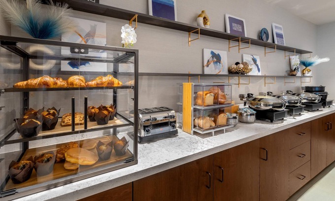 Recreational amenities at the hotel include an indoor pool and a 24-hour fitness center.