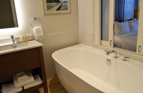 DoubleTree Fallsview Resort & Spa by Hilton Niagara Falls offers 224 accommodations with laptop-compatible safes and coffee/tea makers. Pillowtop beds feature down comforters and premium bedding. 55-inch flat-screen televisions come with premium satellite channels.