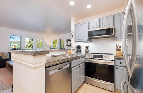 Elegantly remodeled, 1 bed, 1 bath bath first floor corner unit nestled at the base of chair 7 Coonskin lift. An abundance of natural light filters in with a dazzling afternoon alpenglow. San Miguel River and trail are located just steps away for quick access to town. The kitchen is well outfitted for groups who enjoy cooking. The living room has a sectional sofa sleeper, large smart TV and a premium sound system. The bathroom is equipped with a steam shower. Pool and hot tub opens for the summer on 6/1 . Wash/dryer. This is one of the best ski in ski out properties in town! Business License # 017874