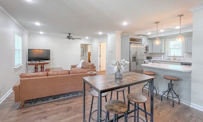 Renovated space in beautiful downtown Starkville. You'll enjoy walking to downtown shops and restaurants. A short walk to Midtown, the Cotton District, and MS State campus. Featuring 3 bedrooms and 2 bathrooms with queen beds and a kitchen equipped for a chef. You'll enjoy afternoons grilling out under the shade of a beautiful Pin Oak tree. 1.6 miles away from Davis Wade Stadium, Dudy Noble Field, and Humphrey Coliseum. There is current construction next door due to a house that burned down