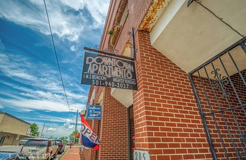 The Downtown Apartments are located on the old town square in Marshall, Arkansas and have amazing views of the Ozark Mountains behind the historic Searcy County Courthouse. An iron, spiral staircase leads to the balcony where you will enjoy a bird's eye view of the courthouse and the sleepy town square.
