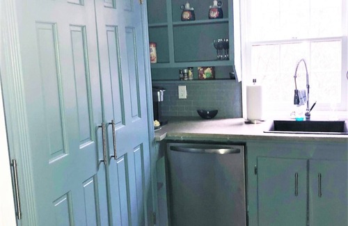 The apartment is upstairs. When pulling into entrance, pull straight forward to park. The unit is in the rear, Apt. D. There is a self check in box at entry door, open and remove key. (You have to re-punch #’s to close the lock box door). There is parking on street if needed. This is a beautiful, clean and very artsy & eclectic apartment exclusively designed and created for hosting guests. Not used by owner. It is on the 2nd floor in the rear of building. It has a separate living room, 2 bedrooms (1 king & 1queen bed) & 2 full bathrooms. Spacious kitchen . The two bedrooms are separate with locking doors. It is located downtown in the historic "DETONTI SQUARE" district. Very quiet with beautiful old homes and large oak trees. It is only 5 blocks from lively 'Dauphin Street' with all of the restaurants, bars and other activities.