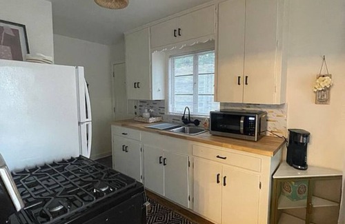Austin is waiting for you at this 1-bedroom duplex. The cozy bedroom features a nice king bed, perfect for a good night's sleep. With amenities like a washing machine, heating, WiFi, and AC, guests will feel right at home. The bathroom even has a nice bathtub for a relaxing soak. Kickback, relax, and enjoy everything Austin and our house has to offer.